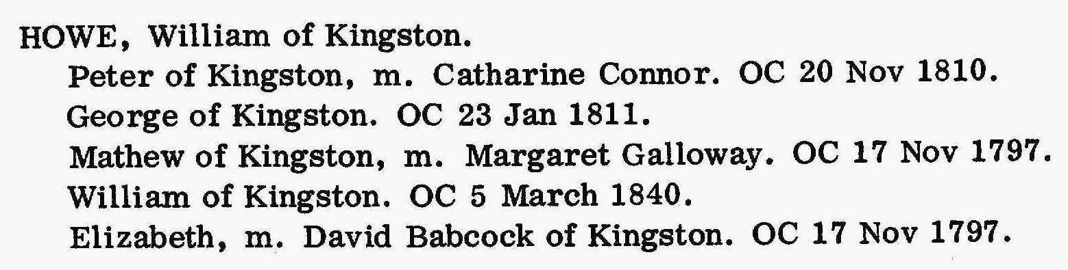However, is this referring to the other William How(e) that arrived in 1782? Might this be the family that is connected to the Caleb and Jemima Howe family and not the family that settled in the Kingston area?